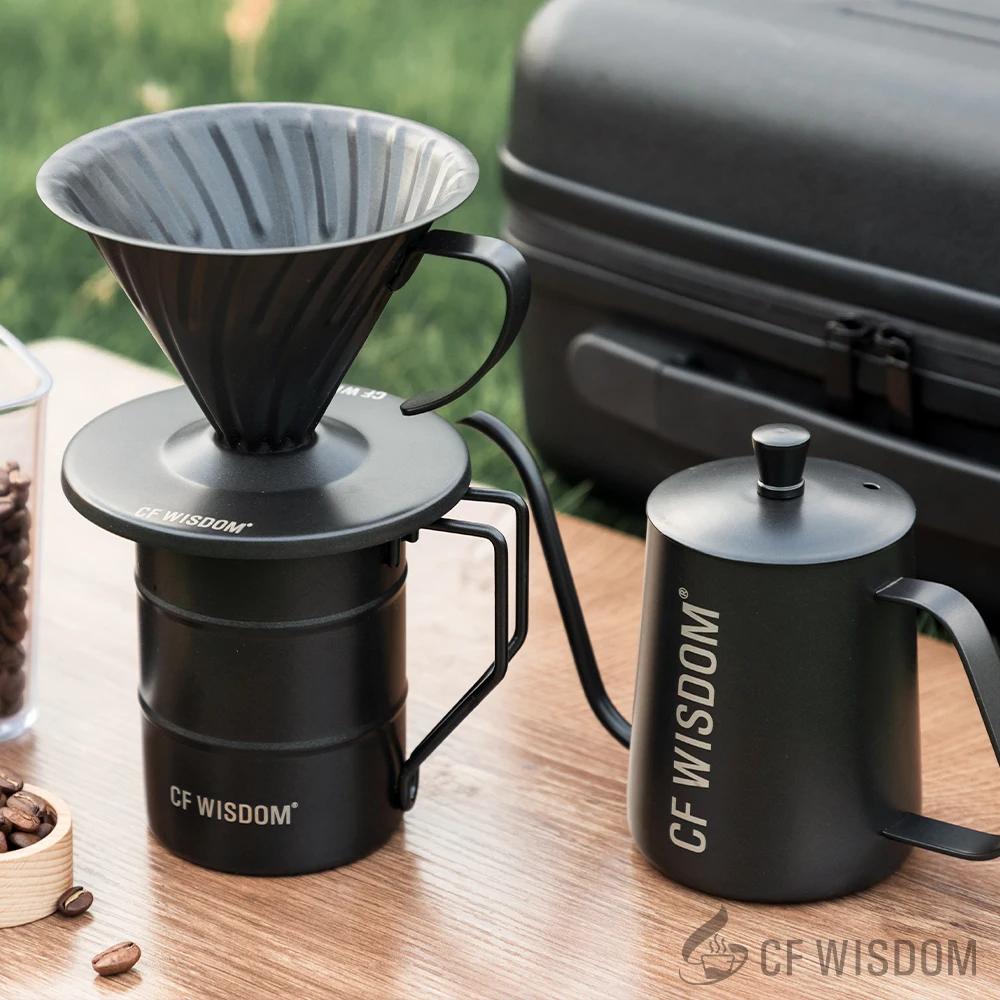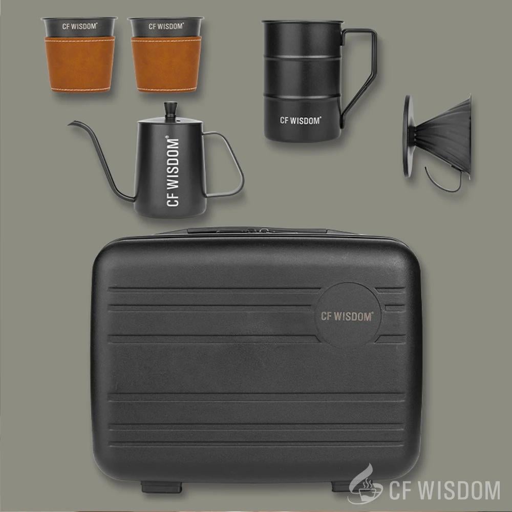 شنطة ادوات القهوة المختصة من CF WISDOMP هي خيار مثالي لعشاق القهوة في الرحلات والنزهات. طقم قهوة محمول أنيق وخفيف الوزن، يضم 5 أدوات أساسية لتحضير القهوة السوداء يدويًا في أي مكان. تصميمه المتكامل يجعله الهدية المثالية لمحبي القهوة والهواء الطلق.