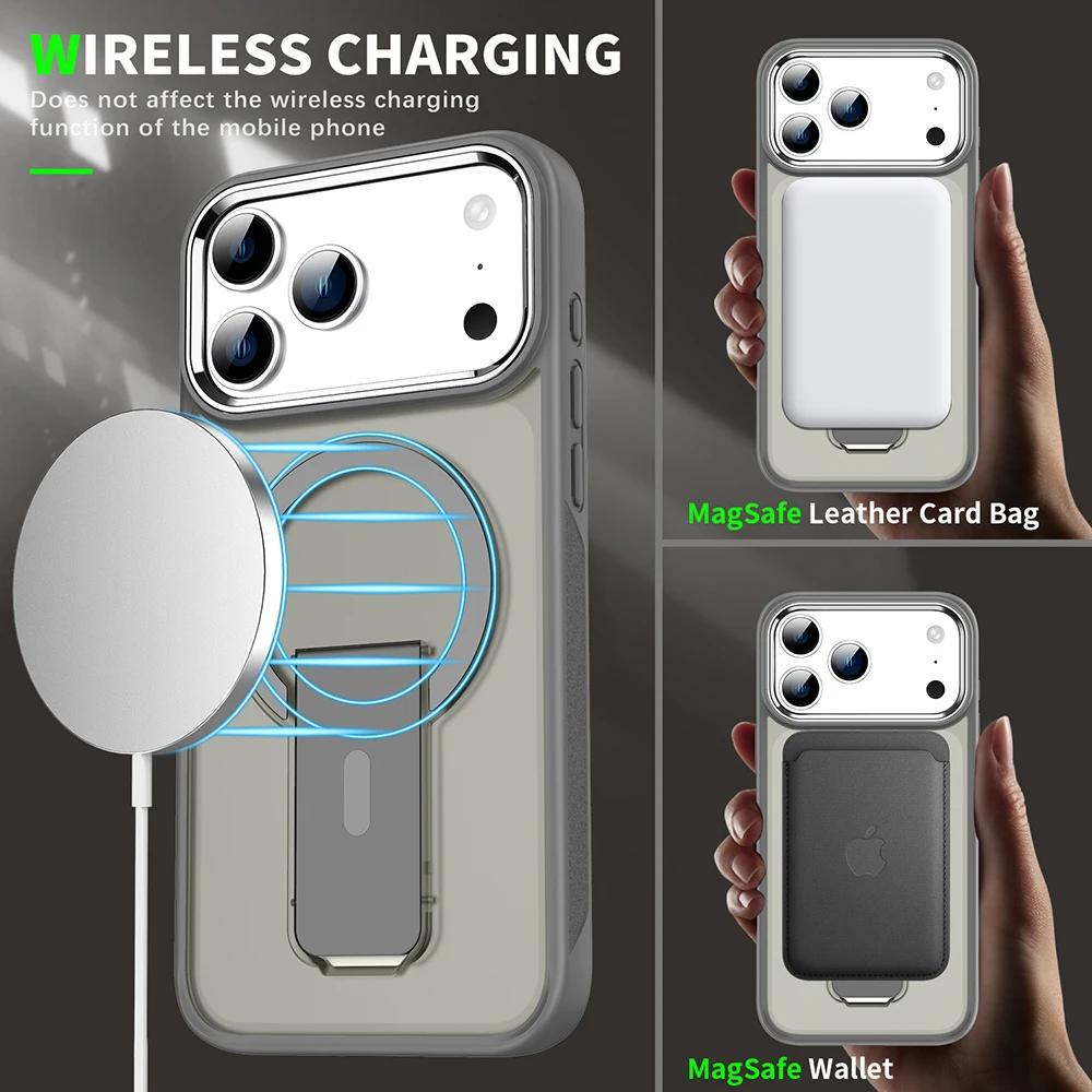 كفر ايفون 17 فاخر لهاتف iPhone 17 Pro Max تجمع بين التصميم العصري والوظائف الذكية، بفضل دعمها Magsafe والمغناطيس القوي، قابلة للطي، لا سلكية، وتحتوي على حامل مدمج. توفر حماية أنيقة ومريحة لهاتفك في كل مكان.