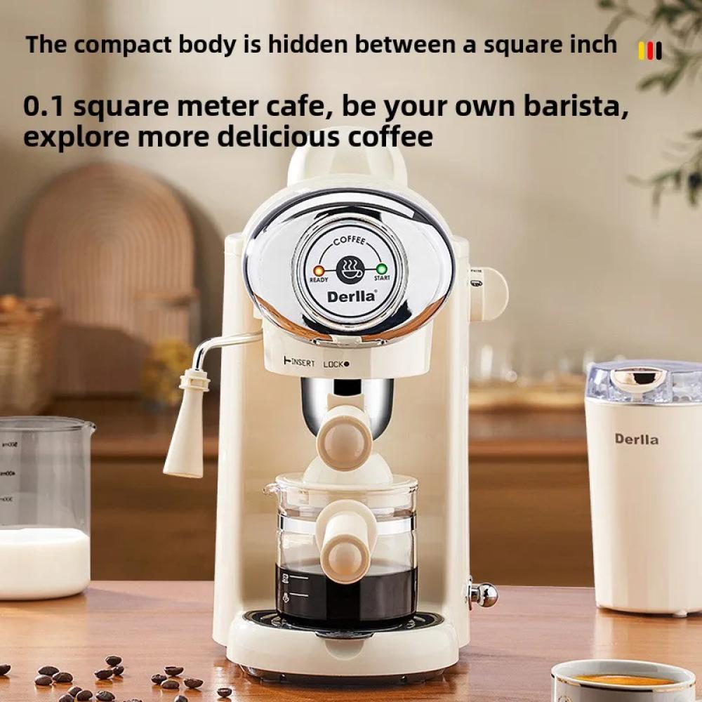 ماكينة عمل قهوة اسبريسو وصنع القهوة الإيطالية المنزلية الصغيرة تمنحك تجربة مقهى احترافية في بيتك، بفضل تصميمها المدمج ونظام الرغوة المتكامل الذي يتيح لك تحضير قهوة غنية ومزبدة بسهولة.